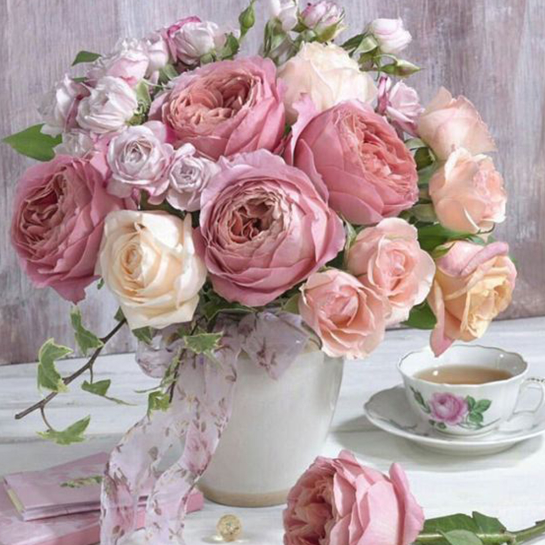 꽃집에 들어가면 나는 생화향 디너 테이블 위 우아한 꽃다발