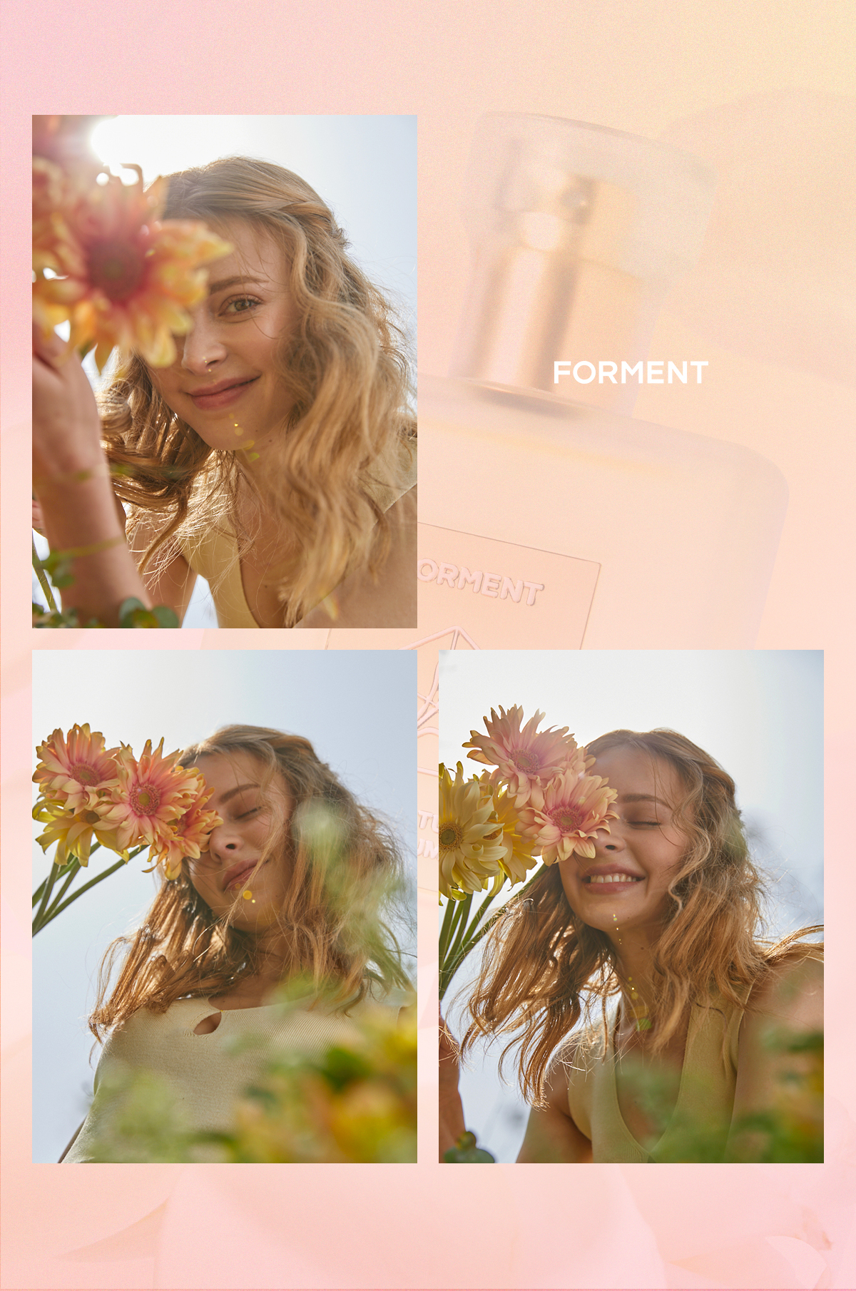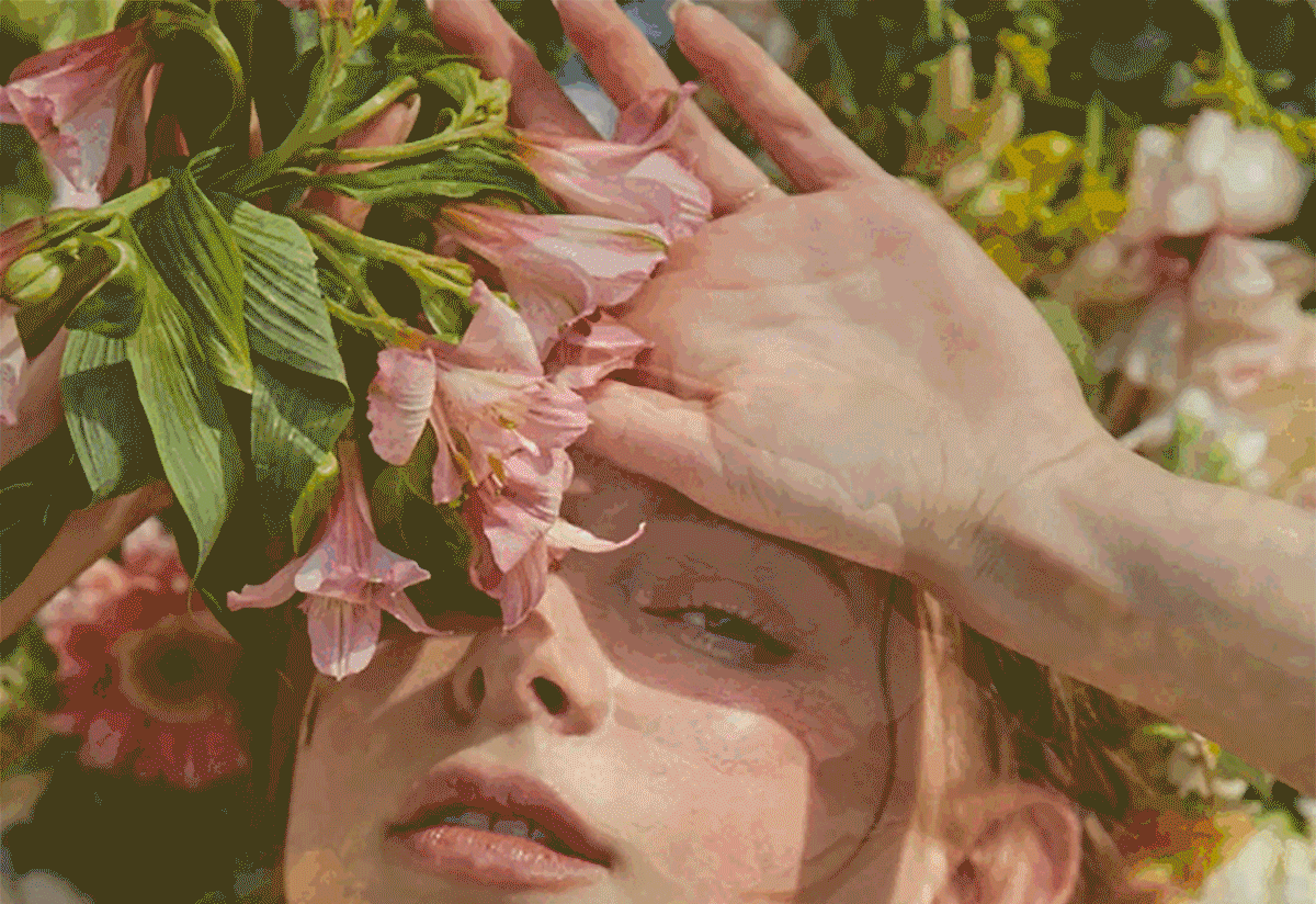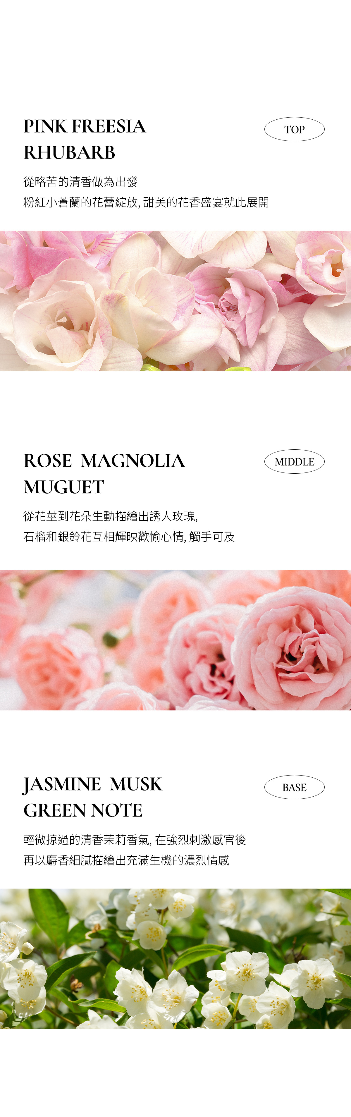 再帶著粉紅小蒼蘭與玫瑰綻放的花瓣下